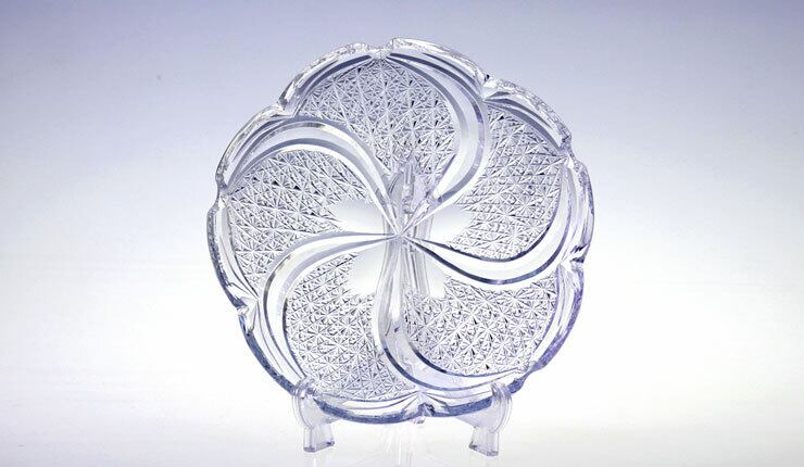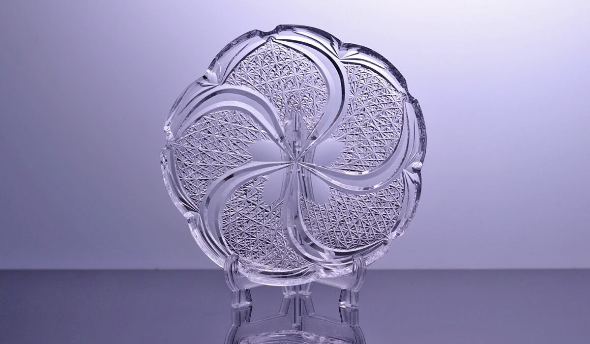 江戸切子の名匠瀧澤利夫の代表作、飾り皿・桜の新色、夜桜